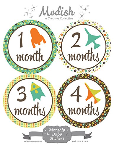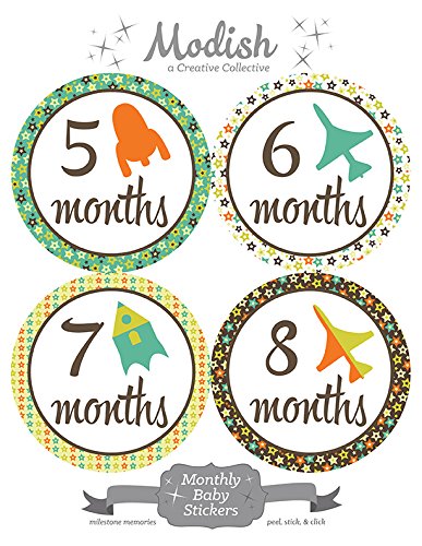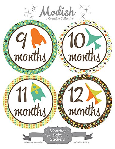 12 Monthly Baby Stickers, Airplanes, Rockets, Baby Boy, Baby Belly Stickers, Monthly Onesie Stickers, First Year Stickers Months 1-12, Airplanes, Rockets, Boy