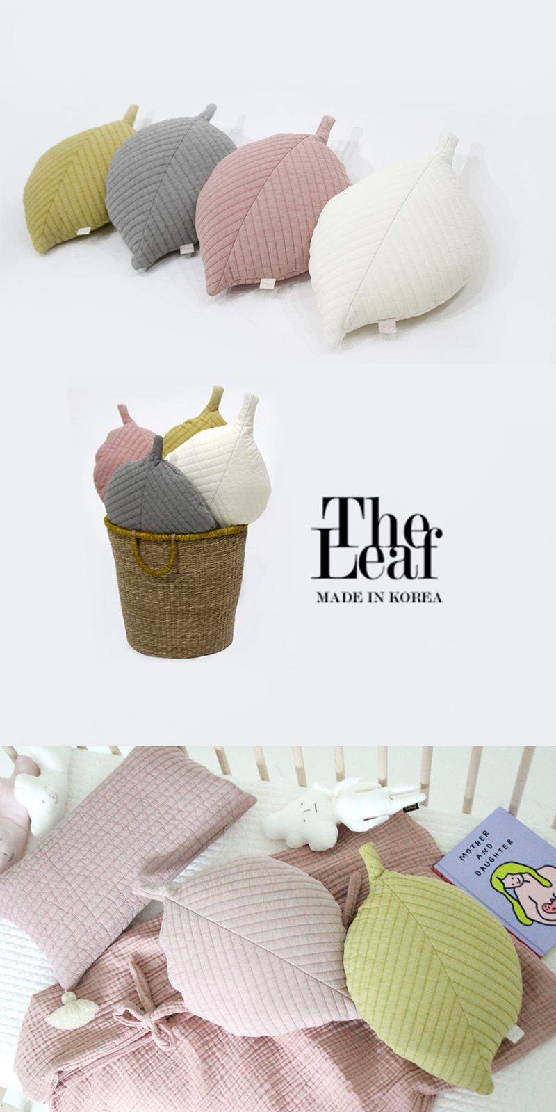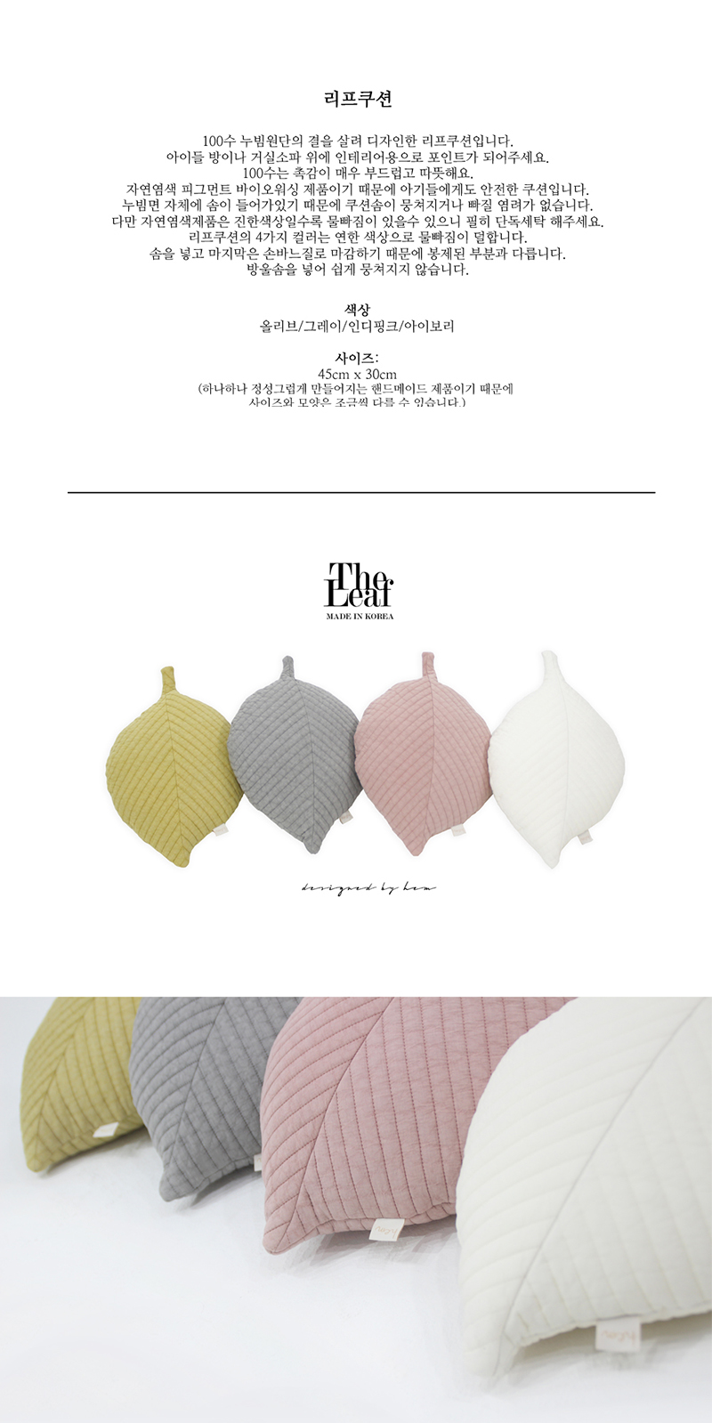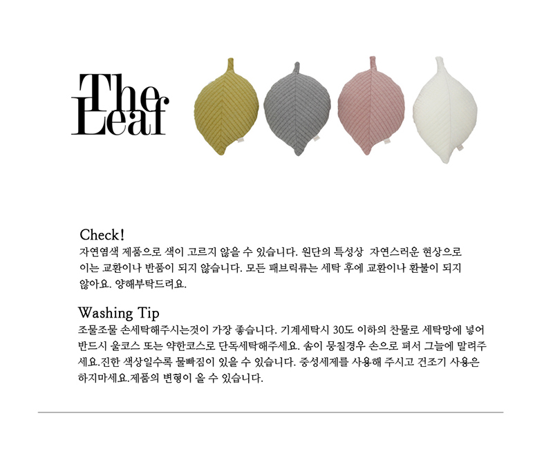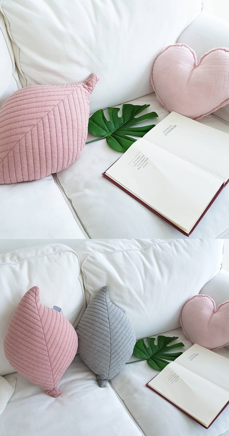 포인트 쿠션으로 사용하기 좋은 나뭇잎 모양 쿠션 입니다.