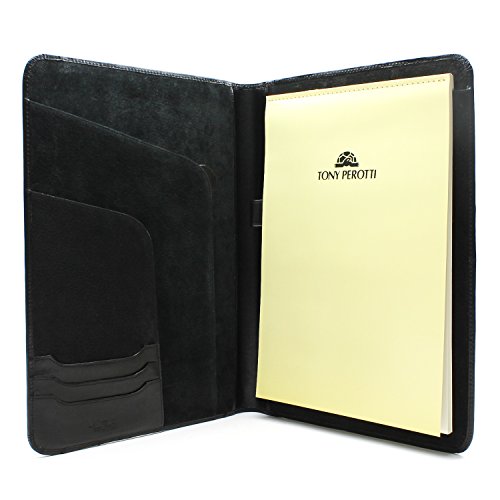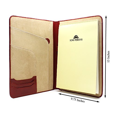 SPECIFICATIONS: -100% Genuine Italian Leather -Interior Pigskin Lining -Stainless Steel Hardware -Double stitched seams -Writing Padfolio