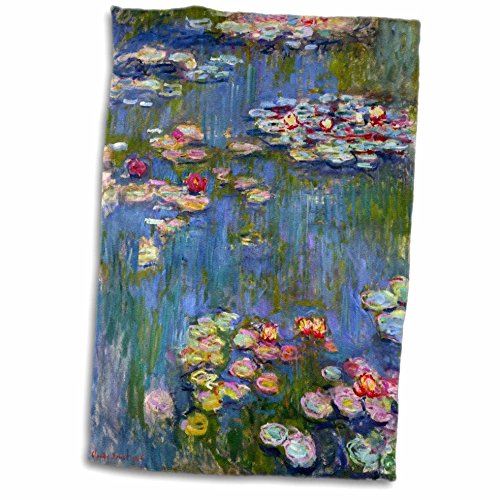 -. Brand : 3dRose -. Feature : Hand/sports towel; 15 x 22 inches / Made of 63% polyester (microfiber) / 37% cotton (velour terry cloth) / Image P.R.Inted on microfiber side / terry cloth side blank / Towel will regain its fullness after the first washing / Image will not fade after washing. Machine washable, do not bleach -. Label : 3dRose LLC -. Manufacturer : 3dRose LLC -. ProductGroup : Home -. ProductTypeName : HOME_BED_AND_BATH -. Publisher : 3dRose LLC -. Studio : 3dRose LLC -. Title : 3dRose InspirationzStore Vintage Art - Water lilies by Claude Monet - impressionism - impressionist waterlilies on pond - famous fine art - Towel
