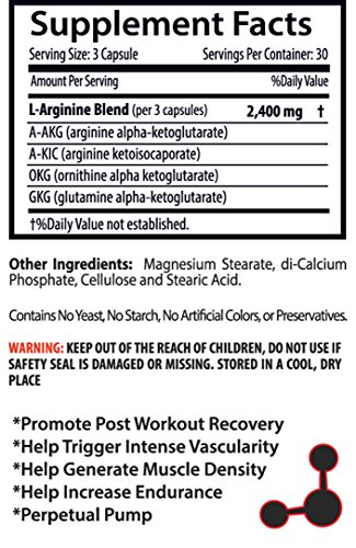 -. Feature : BENEFITS OF NITRIC OXIDE: Nitric Oxide is a naturally occurring physiologic compound and is available as a performance-boosting supplement for athletes. Nitric Oxide Muscle Power 2400mg supplements are used to increase cardiovascular endurance and reduce recovery time, but they can also improve cardiovascular wellness, bone and joint health, as well as increase the ability to perform learning and memory tasks. / NITRIC OXIDE MUSCLE POWER 2400mg INCREASES MUSCLE STRENGTH: Nitric oxide is proven to increase muscle strength. As you train, blood flows into your muscles causing a more vigorous circulation. Nitric Oxide Muscle Power 3150mg products are focused on increasing your natural circulation of blood. If you're looking for that extra muscle boost in the gym Muscle Power 3150mg will assist you in Endurance, Post work out recovery and Muscle gain. / NITRIC OXIDE MUSCLE POWER 2400mg: POWER FOR CARDIOVASCULAR HEALTH: Nitric oxide is P.R.Imarily recognized for its role as a vasodilator on the cardiovascular system. Nitric oxide is important in controlling the circulation of blood and regulating activities of the brain, lungs, liver, kidneys, stomach and other organs; if there is not enough Nitric Oxide present, the heart may not effectively deliver blood to all parts of the body. / NITRIC OXIDE MUSCLE POWER: LEARNING AND MEMORY: Nitric oxide acts as a neurotransmitter in the brain and is especially important in learning and memory tasks that take place specifically in the hypothalamus. Nitric oxide is synthesized in the brain upon demand and can be used in cognitive tasks immediately after being formed. / OUR GUARANTEE: Each Bottle Contains 90 Tablets. Our product is proudly Made in USA at FDA approved facility and followed by strict GMP guidelines. Your Satisfaction Is Important To Us. 30 Days Money Back Guaranteed!