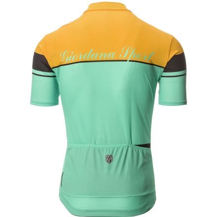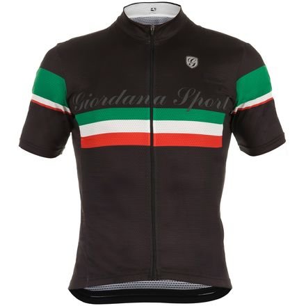 Studio : Giordana Publisher : Giordana Product Description Reminiscent of classic cycling jerseys sewn of wool, the Giordana Men's Sport Elite Jersey draws from Giordana's three decades-plus of design expertise while invoking a retro-inspired aesthetic. Blending the best of technical expertise with vintage stylistic details, the Sport Elite Jersey features a soft, double-faced material that's ultra-comfortable and breathable, effectively managing moisture when you're riding at a high cadence. It forgoes a skin-tight cut for a more relaxed, casual fit, with minimal paneling that brings to mind days where steel frames and wool jerseys ruled the road. Also, ceramic fibers offer UV-protection when you're riding under the blazing-hot sun, as well as providing lasting freshness with antimicrobial properties. Designed with classic details, the Sport Elite features a full CamLock reversed zipper, as well as three rear pockets, complete with a right-scooped design that reveals its contrast lining colors. Other key features include reflective accents, elastic-free sleeve cuffs, and light elastic along the waist for a secure fit when you're dropped over the bars. 0