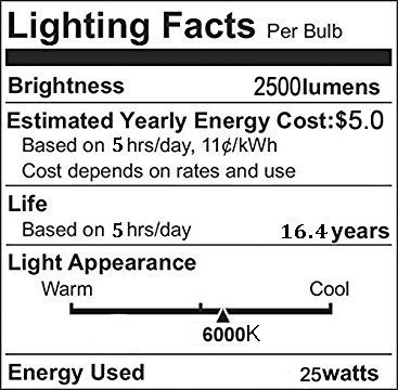 - ★ Super Bright and Energy Saving - 80pcs SMD5730 LED, 25W LED bulb equal to 200W incandescent bulb, 2500 lumen high brightness, you save up to 80% of electricity costs compared to a comparable incandescent light. LARGE Size (ØxL): 2.76 inch x 6.42 inch.