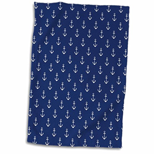 3D Rose twl_251655_1 White Sailboat Anchors on Blue Background Towel, 15" x 22"