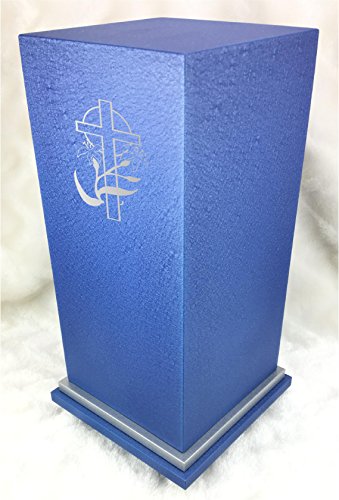 PERSONALIZED Custom Engraved Cross & Flowers Cremation Urn Vault by Amaranthine Urns, made in the USA, Eaton SE Painted Silver (up to 200 lbs living weight) (Celestial Blue)
