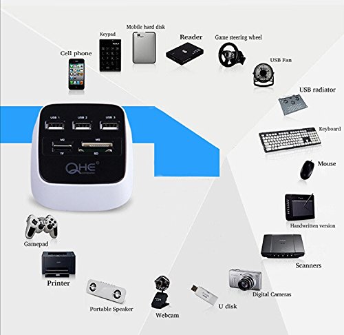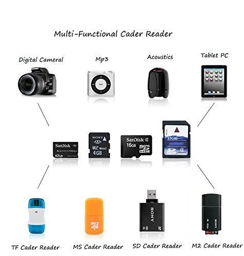 Can read 7 different types of memory cards: SD, SD-HC, SD-XC, MMC, RS-MMC, microSD, and miniSD