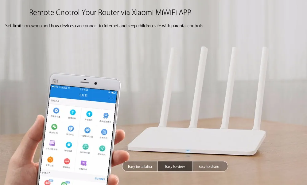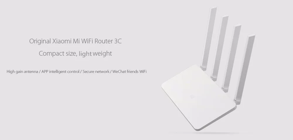 Packing List: 1 x Original Xiaomi Mi WiFi Router 3C, 1 x Power Adapter, 1 x Chinese Manual