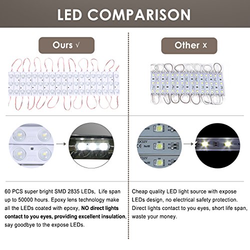 - GO SAFE - Epoxy lens technology make all the LEDs coated with epoxy, say goodbye to the expose LEDs. UL listed adapter, IP44 waterproof, never get an electric shock, even in the bath room!