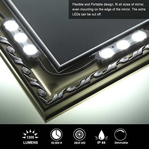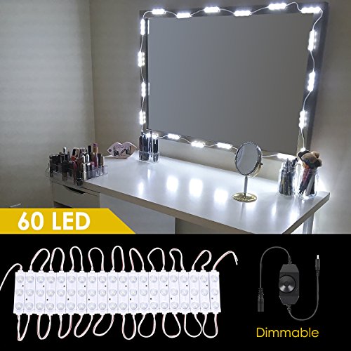 - INSTALLED ANYWHERE - 60 LEDs, 11ft length in full length makes it fit most mirrors. Coming with 3m tape on the light's back, stick and play, ready to be mounted anywhere. The extra bulbs can be cut off.
