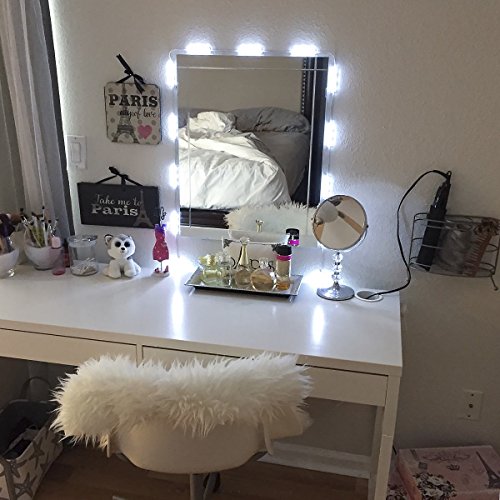 - ILLUMINATE YOUR BEAUTY - Our strip of lights illuminates the mirror and your reflection, making it easier to spot each detail when beautifying yourself. Light it up and treat yourself to a professional makeup experience!