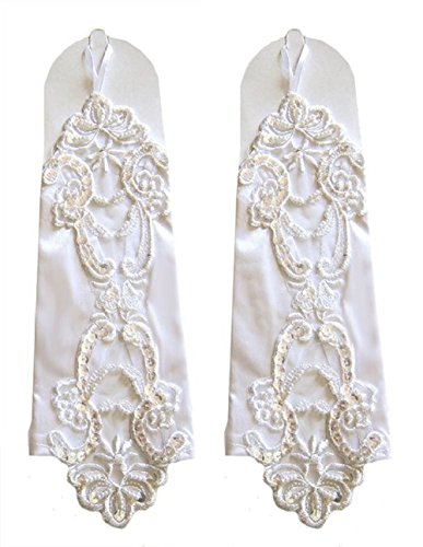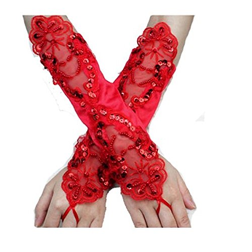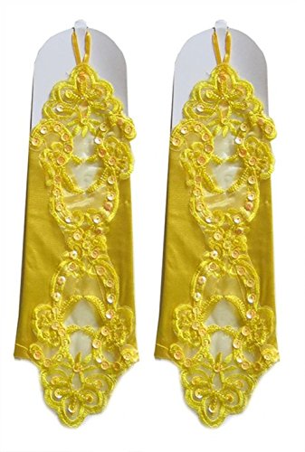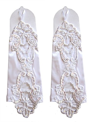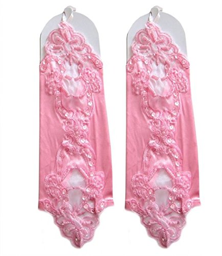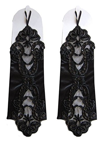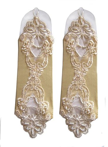 Taiycyxgan Fingerless Elbow Length Flora Lace Faux Pearl Sequin Satin Gloves
