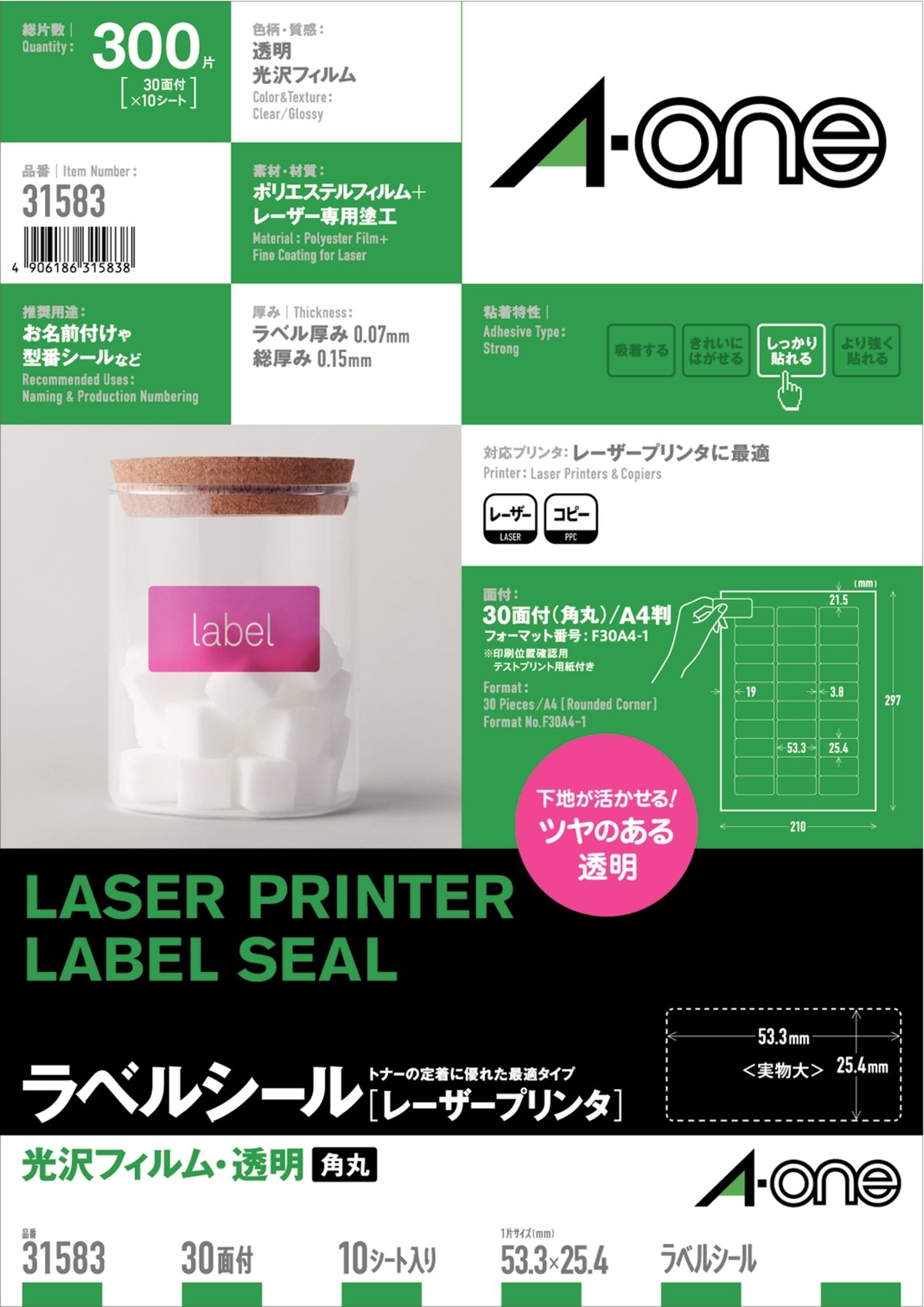 A-One label seal glossy film transparent 30 face 10 sheets 31583