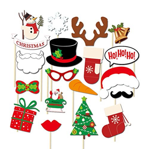 Tinksky Christmas Photo Booth Props 19 Pieces DIY Kit Xmas Photo booth Props Party Supplies Christmas Gift