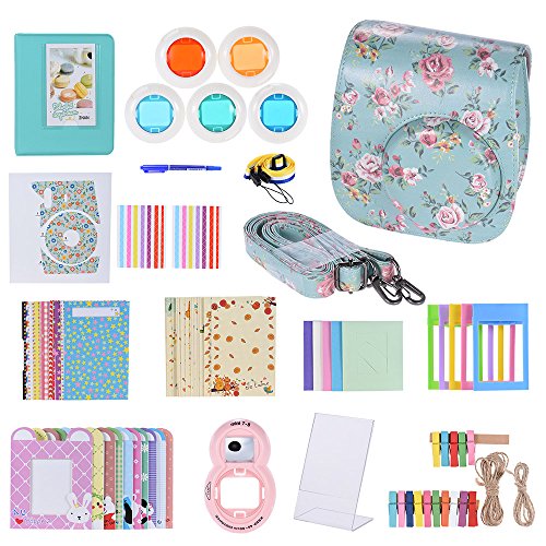 Andoer 14 in 1 Accessories Kit for Fujifilm Instax Mini 8/8+/8s Camera Case/Strap/Sticker/Selfie Lens/5pcs Colored Filter/Album/3 Kinds Film Table Frame/10pcs Wall Hanging Frame/40pcs Border Sticker