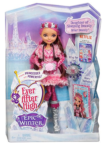 -. Binding : Toy -. Brand : Ever After High -. EAN : 0887961247688 -. Feature : Inspired by all new Netflix Original Series "Epic Winter" / Dolls are dressed for the adventure in wintry looks with snowy sparkle and fur detailing / Cool accessories include detailed snow boots, iconic headpieces and themed bags / A child-sized ring lets kids accessorize too / Includes a storybook for each doll add to the fun -. IsAdultProduct : 0 -. ItemPartNumber : DKR65 -. Label : Mattel -. Manufacturer : Mattel -. Model : DKR65 -. MPN : DKR65 -. PackageQuantity : 1 -. PartNumber : DKR65 -. ProductGroup : Toy -. ProductTypeName : TOYS_AND_GAMES -. Publisher : Mattel -. ReleaseDate : 2016-04-14 -. Studio : Mattel -. Title : Ever After High Epic Winter Briar Beauty Doll -. UPC : 887961247688 -. Warranty : 1 year warranty against manufacturer defects