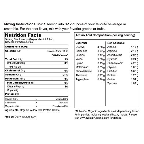 Source Organic Pea Protein Isolate starts with organic yellow peas from Canadian farms. The yellow pea serves an important role in rotational farming by adding nitrogen and biomass back to the soil, reducing pests and weeds, and laying the foundation for higher yielding, more nutritious, and sustainable future harvests. The raw organic yellow peas are processed without the use of hexane or enzymes to produce an organic pea protein isolate with an unsurpassed amino acid profile containing 4.8 grams of Branched Chain Amino Acids (BCAAs) and 2.18 grams of arginine per serving. Each crop of peas is third-party lab tested pre- and post-production to meet nutritional and microbiological specifications. Source Organic Pea Protein Isolate provides a vegetarian/vegan and allergen-free option that is a complete source of high quality organic protein and excellent source of iron. Source Organic is committed to working with farmers who practice and support organic and sustainable farming and animal welfare.Feature