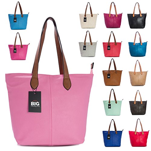 | Big Handbag Shop Womans Designer Plain Soft Tote Shoulder Bag |