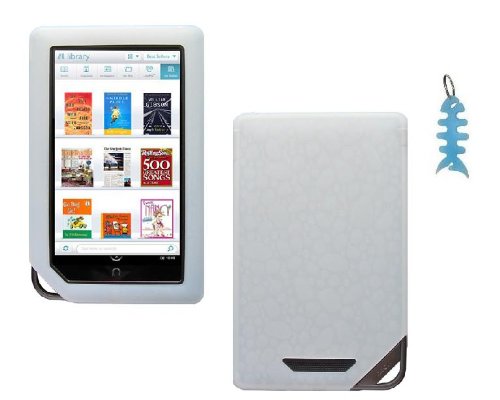 -. Title : Clear/White Silicone Skin Case Cover + Light Blue Fishbone Style Keychain for Barnes and Noble Nook Color and Nook Tablet