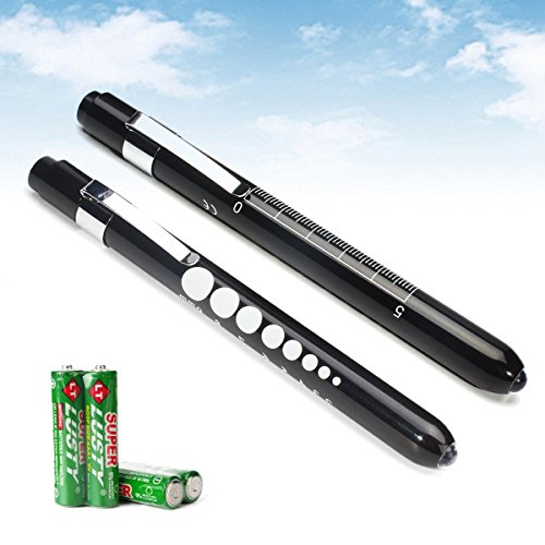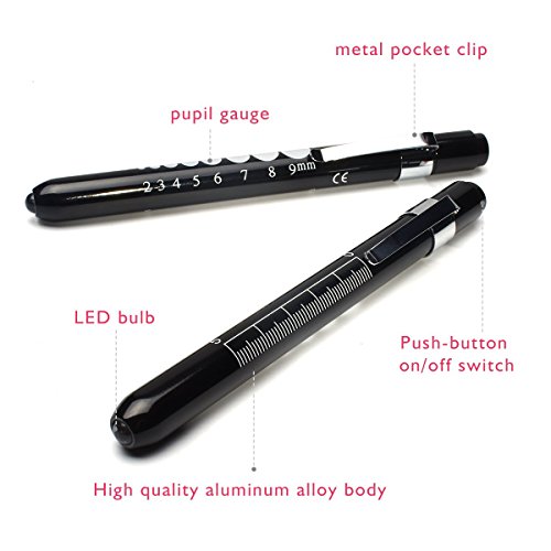 Opoway Nurse Penlight with Pupil Gauge Warm White Medical Pen Light For Nurses Doctors Batteries Included, Black 2ct.