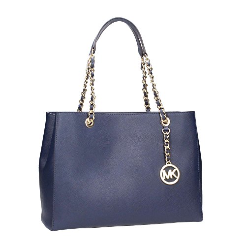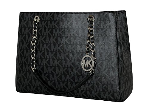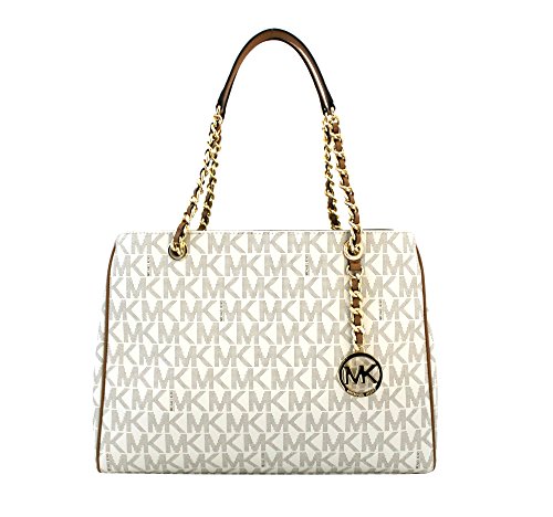 -. Brand : MICHAEL -. Department : womens -. Feature : Leather / Fabric Lining Gold-Tone Hardware, MK Medallion Chain Logo Tag on Front Leather & Chain-Link Double Shoulder Strap with 9" Drop Interior Features 1 Middle Zipper Compartment, 1 Zipper Pocket, 4 Open Slit Pocket 14" (L) x 10.5" (H) x 6" (D) AUTHENTIC -. ProductGroup : Shoes -. ProductTypeName : HANDBAG -. Size : 14" (L) x 10.5" (H) x 6" (D) -. Title : MICHAEL Susannah Large Tote Satchel Leather Handbag