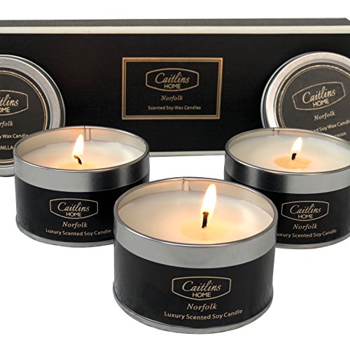 Caitlins Home Scented Candles Aromatherapy Soy Wax Candle Gift Set Vanilla, White Lavender, Eucalyptus Scents