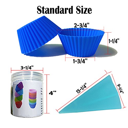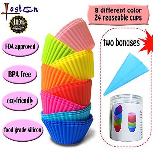 Lasten Silicone Cupcake Liners with Pastry Bag and Storage Tank as Bonuses , Reusable & Non-stick Baking Cups , standard Muffin Cups Chocolate Holders Truffle Cups (24 pcs /8 colors)