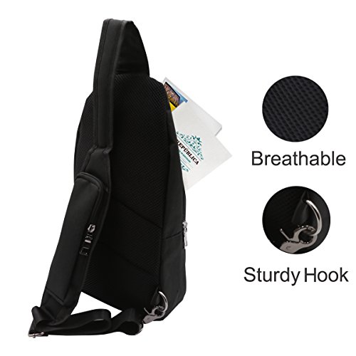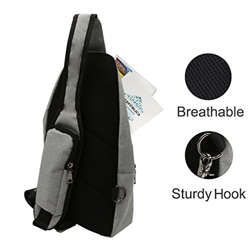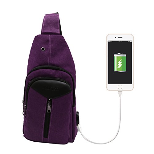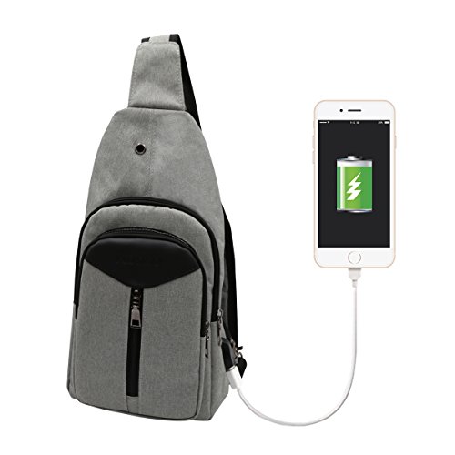 -. Title : Mosiso Sling Backpack, Polyester Durable Chest Shoulder Unbalance Gym Fanny Lightweight Crossbody Sack Satchel Outdoor Hiking Bag for Men Women Girls Boys Travel Daypack with USB Charging Port