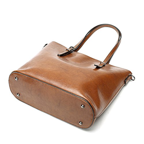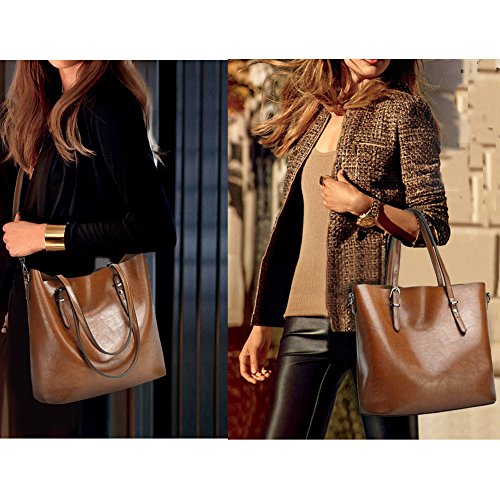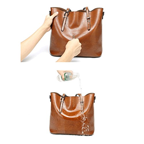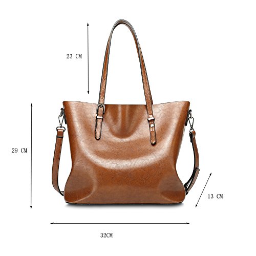 -. Feature : Material: soft synthetic leather with fabric lining.(Processed with oil wax, so it looks more bright. Along with many delicate and clear texture.) / Approximate Dimension: 12.6" L x 5.1" D x 11.4" H ;Handle Drop: 9.1" (long enough to put on shoulders). / All the stuff can be well organized inside! 2 big compartments FIT A4, a central zippered pocket for cosmetic and other daily things , 1 side zippered pockets for Short wallets and another 2 pockets for keys/cards. / This tote bag goes well with any outfit.Simple fashion look and powerful capacity for everyday or traval use. Excellent bag for using in office, school, travelling or any other daily occasions. Perfect gift choice. / Warranty: All of our bags have 3-Month WARRANTY. Any quality problems with your bag, please contact us, we will solve it.Please allow little color difference due to the monitor and light brightness.
