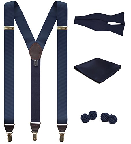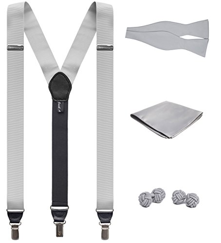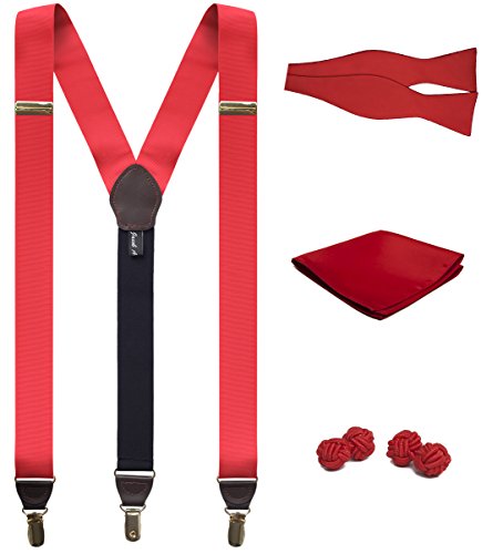 Binding : Apparel Product Description SUSPENDERS: This is a Jacob Alexander pair of premium suspenders. Made in a Y-back formation, the front straps are crafted from a high end grosgrain ribbon. The dimensions are a classic 1.25" width with a comfortable adjustable standard 48" length. The Y-back meets at a leather joiner patch in back, either black or brown; colors were chosen to complement the fabric color. The suspenders fasten to your trousers with a clip connection. There is a leather drop-clip feature; a leather trimming between the fabric and the clip which adds a beautiful element to the suspender as well as an important functionality - keeping the fabric at full width without the appearance of squeezing when it connects to the clips. The clips and adjustable sliders are made of high-quality hardware finished in a color contrasting finish of either silver or gold - to complement the color of the fabric.