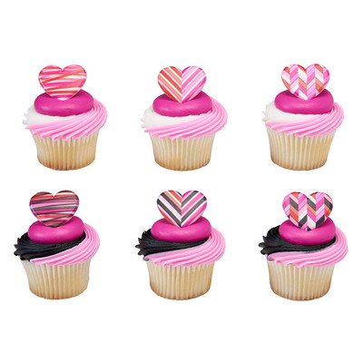 24 Pack Geometric Hearts Love Cupcake Rings Toppers