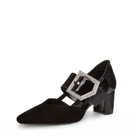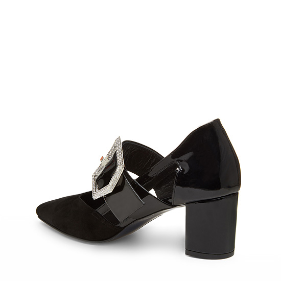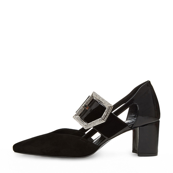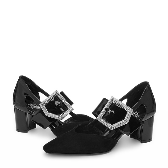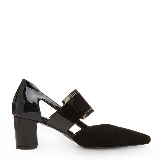 - 스웨이드 소재 콤비로 세련된 여성 펌프스.