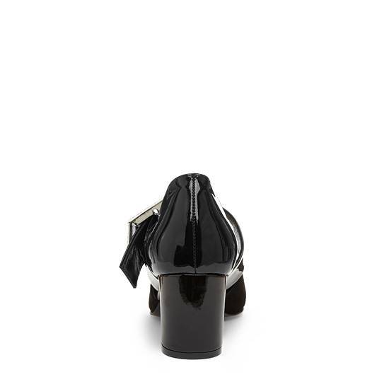 시크한 무드이며 볼드한 굽으로 편안한 착화감.