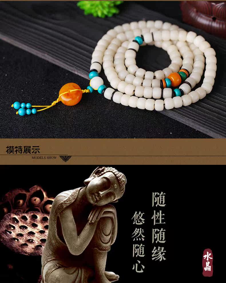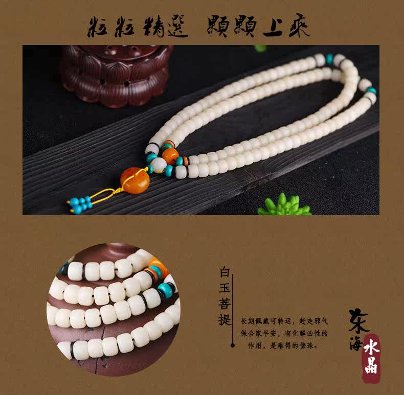天然正宗海南菩提 白玉菩提根手串 手链 108颗佛珠菩提子