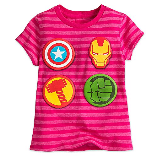 Genuine, Original, Authentic Disney Store Screen art Icons include Captain America, Iron Man, Thor, and Hulk Striped heathered jersey knit Contrast ribbed crew neck Brand : Marvel Item model num : 456214147466 Package Dimensions(LxWxH) : 28x24x5cm ; 95 g