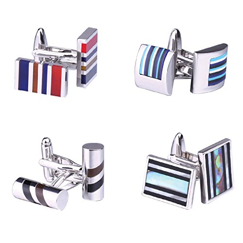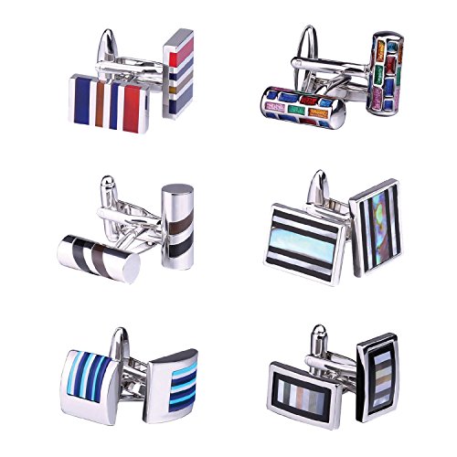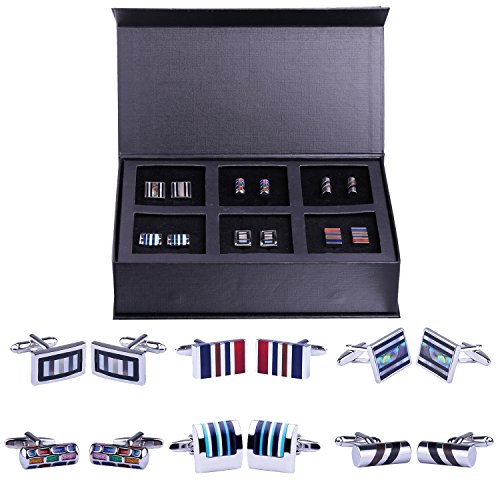 Studio : BodyJ4You Publisher : BodyJ4You Binding : Jewelry Product Description Men's Cuff-Links Gift Set Display Case Holder Storage Tray Cufflinks. This is a classic men's cufflink set of 6 pairs with display case organizer. Set of 6 pairs cufflinks comes with: Pair of rectangle blue and brown stripes high-polish cufflinks, Pair of black and brown diagonal stripes cylinder shape cufflinks, Pair of blue stripes dome high-polish cufflinks, Pair of colorful mosaic style cylinder shape cufflinks, Pair of shell style stripes rectangle high polish cufflinks, And pair of shell style stripes rectangle high polish cufflinks. These cufflinks are an excellent way to add an elegant touch to your outfit. This set comes in an elegant gift box, and makes a great gift for a loved one. It can also be a great gift for father's day, a business co-worker, or for a groomsman. Each cufflinks is smooth and polished. It is made from high quality silvertone Brass Rhodium plated. It has a Swivel toggle clasp for easy wear. We strive to bring you the highest quality starching kit sets at unbeatable prices. This is why we are sure you will be more than satisfied with our services.