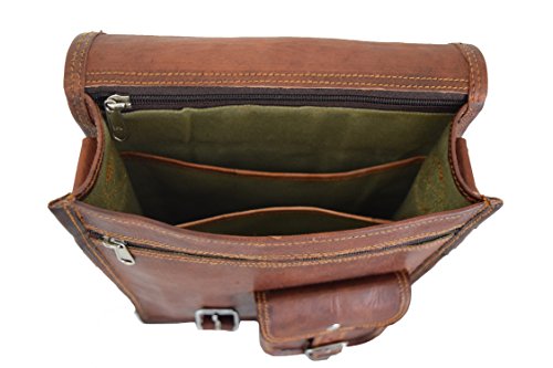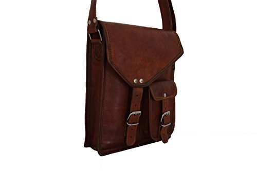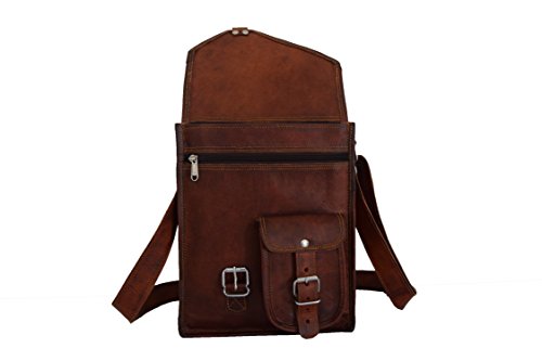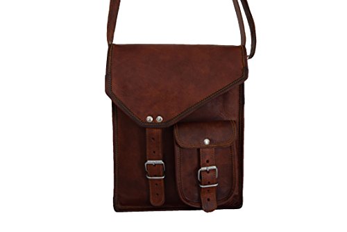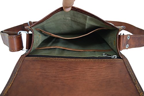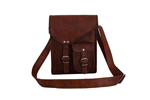 -. Brand : Vintage Craft -. Color : Brown -. Department : mens -. Feature : 11x9" Real Brown Leather Messenger Bag / 1 front small pocket / 1 front zip pocket under flap and 1 inside zip pocket / 2 partitions / 1.35" wide and 58" long adjustable leather shoulder strap -. ProductGroup : Apparel -. ProductTypeName : LAGE -. Size : S-Small -. Title : Vintage Craft Real Brown Leather Satchel / Cross Body Messenger Bag 11x9x3"