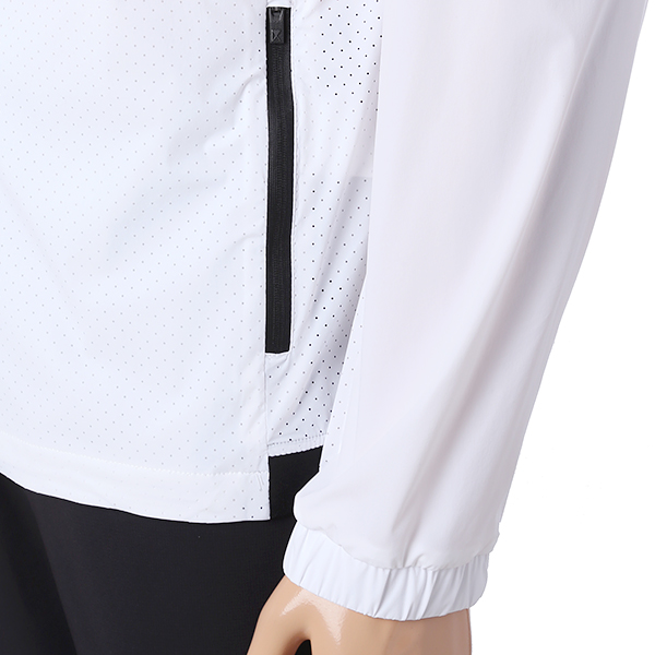 - 펀칭 소재 사용하여 통기성을 준 여름 기능성 바람막이 - 스트레치성이 좋으며 소프트한 터치의 외관 - 소매 로고 웰딩으로 포인트를 줌 - 어깨 우븐 배색 사용으로 스포티한 제품 | ||||||||||||||||||||