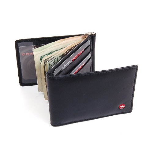 Product Description Zachary Money Clip by Swiss Bags features and outside ID window. Comes with a classic spring clip to hold the bills in place. The clip can be inserted from the top or the bottom whichever position seems more comfortable and secure for you to hold the bills. The Z shape gives this wallet good capacity for cards and other misc items you would like to carry in your wallet. 0