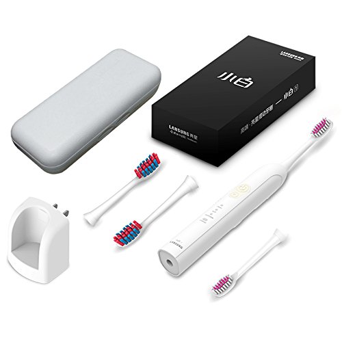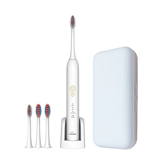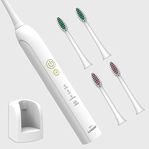 Lansung sonic rechargeable electric toothbrush For Kids And Adult Dentists recommend 3 modes vibration sound small with 4 replacement head 1charging base and 1 suitcase (blue)