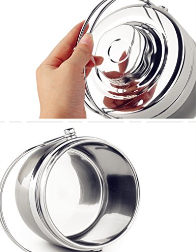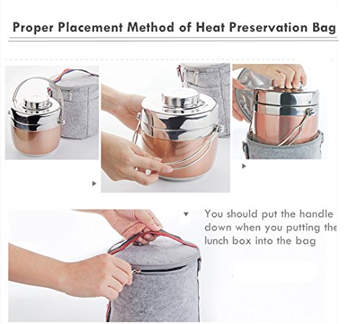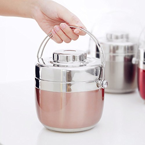 TIPS:TO AVOID LEAKAGE PLEASE KEEP THE LUNCH BOX IN UPRIGHT POSITION. HAT PRESERVATION TIME: Approx 3 hours. The higher the food temperature is, the longer the holding time is! Description Mannice lunch container is the first choice for people who are at home or outside to use. Its main body is made of high quality 304 stainless steel, which is durable, more hygienic and convenient to clean. It is designed as all-in-one style, two layers and heat-keeping for 3 hours. You may place dish and rice in different layers and the smell will not mix.