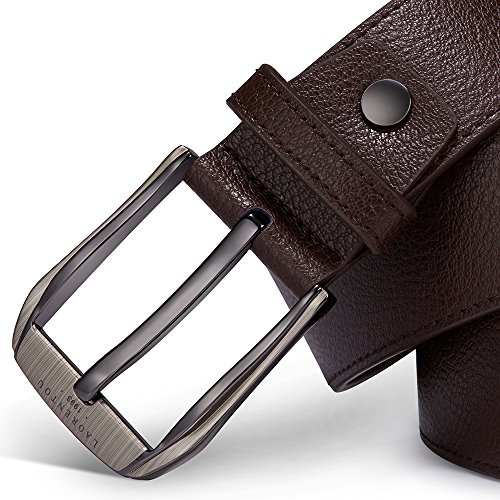 MAXIMUM DURABILITY - Leather strap is a bit wider than 11/8" presenting the perfect look of a fine, genuine leather quality belt, complemented with an HIGHLY FASHIONABLE stylish, buckle that is elegantly designed with class. Scratch resistant buckles made to last.