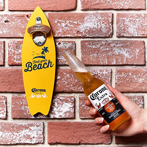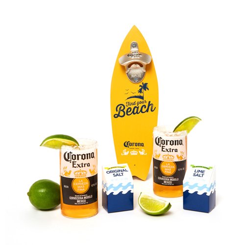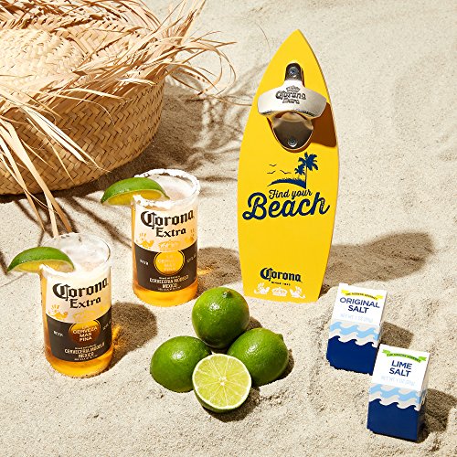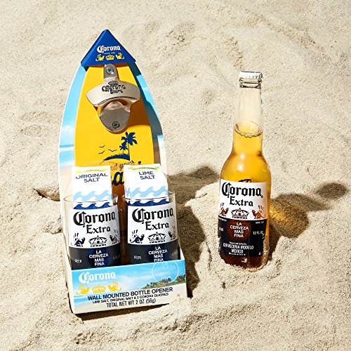 -. Brand : Corona -. Color : Yellow -. EAN : 0732346417371 -. Feature : GIVE CHARACTER TO YOUR BAR: Real Wood Limited Edition Wall Mounted Bottle Opener Shaped Like A Surfboard / JUST ADD BEER: Two 12 Ounce Corona Glasses - Made to Look Just Like a Cut-Off Bottle / FOR THE TEQUILA LOVERS: Comes with Two Different Flavors of Tequila or Beer Rimming Salt: Original and Lime / SET-UP MADE EASY: Our Corona Gift Set is the Perfect Start to Any Party / PERFECT GIFT FOR THE MAN CAVE: Great for Husbands, Boyfriends, Dads, Brothers or Anyone who Loves Beer! -. Label : MODERN GOURMET FOODS -. Manufacturer : MODERN GOURMET FOODS -. ProductGroup : Kitchen -. ProductTypeName : KITCHEN -. Publisher : MODERN GOURMET FOODS -. Studio : MODERN GOURMET FOODS -. Title : Corona Wall Mounted Bottle Opener Gift Set: A Surfboard Shaped Bottle Opener with Salts and Beer Glasses -. UPC : 732346417371