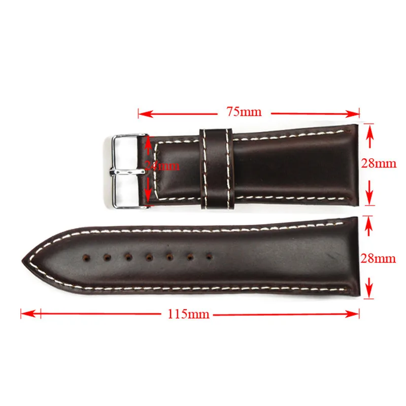 다크 브라운 빈티지 스타일의 가죽 시계 밴드 시계 스트랩 28 미리메터 이탈리아 정품 기름칠 가죽 손목 남성 시계