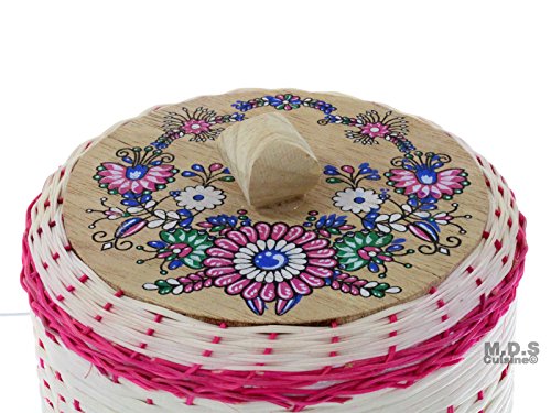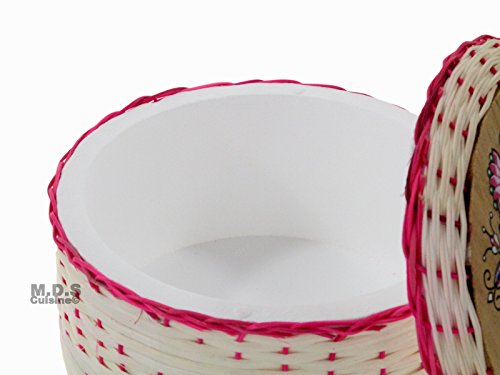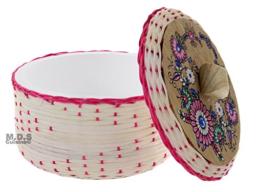 Studio : M.D.S Cuisine Cookwares Publisher : M.D.S Cuisine Cookwares Product Description Perfect for Tortillas, Flat Bread, Pita, Bread, Naan, Arepas, Pancakes and more.Tortilla Warmer with inner styrofoam - Wickerwork is a flexible plant branch or twig, as of a willow, used in weaving baskets or furniture,The lid of the Wicker Tortilla Warmer is decorated with a beautiful flower and petals design.Choosing a tortilla warmer is just like choosing any other piece of equipment for your kitchen.No matter what your style or budget They make a wonderful addition to your Kitchen or restaurants as an authentic tortilla server.Beautifully designed and Hand Made by Mexican Artesians for an original look. 0