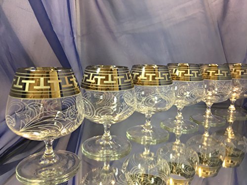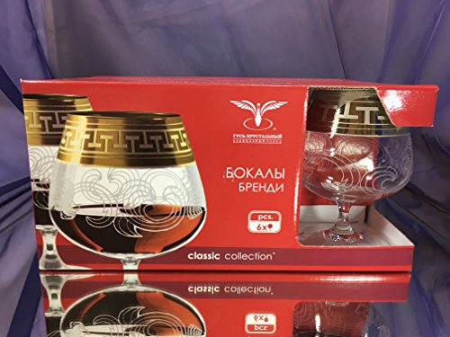 Studio : Gus-Crystal Glass Factory Publisher : Gus-Crystal Glass Factory Product Description Crystal Snifter Glasses 13oz. Set of 6. Perfect for cognac, brandy, whiskey, armagnac, calvados glasses with platinum plated trim greek key vintage european design. This set makes it awesome gift for wedding, birthdays, housewarming, graduations, anniversaries. Made from high-quality glass, this elegant set is great for a formal dinner or just a casual drink with friends or family. Whatever the events, this goblets will surely become a great addition to conversation for all who come to your sweet home. 0