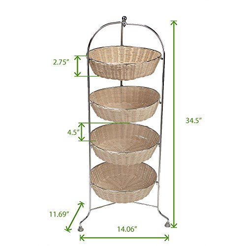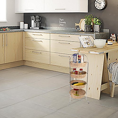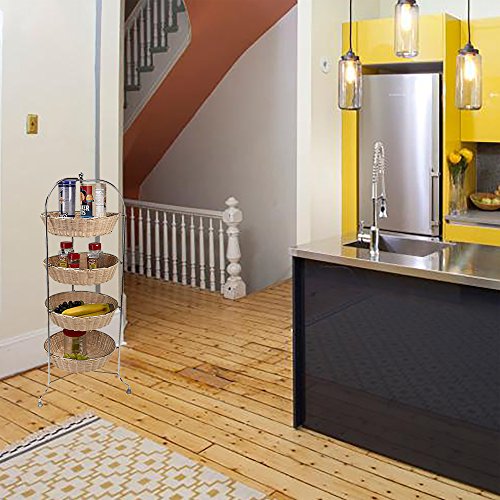 Mind Reader 4 Tier Woven Rolling Kitchen Cart, Brown