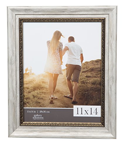 GALLERY SOLUTIONS 11x14 White Wash Wall Picture Frame with Ornate Gold Liner