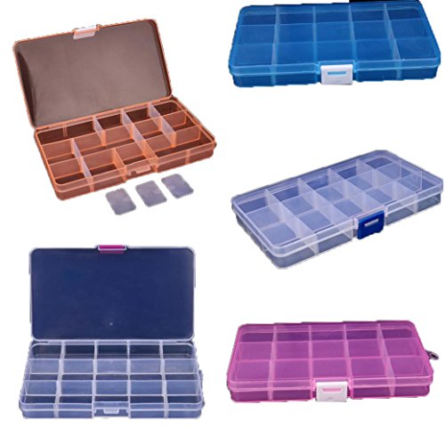 -. Title : Leoy88 15 Slot Jewelry & Cosmetic Storage Box Plastic Compartments Elegant Tray Rings Case (5 color)