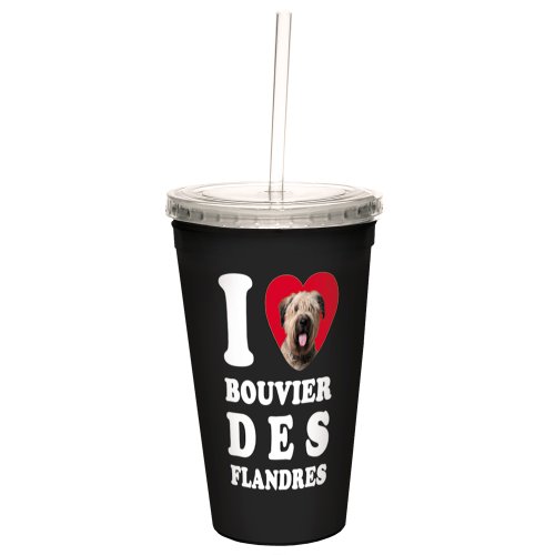 Tree-Free Greetings CC35017 I Heart Bouvier des Flandres Artful Traveler Double-Walled Cool Cup with Reusable Straw, 16-Ounce