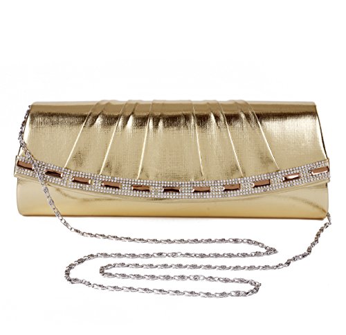 Product Description You cannot resist the allure this evening bag.With metal clasp flap closure and metal as well as rhinestone lined adorn. It has a strap that you can cross body or folding to short one. Inside,one long pocket,one small insert pocket.This evening bag is easily match.The size of this evening is length 27cm(10.6 inches) ,width 9cm(3.5 inches),height 4cm(1.2 inches),strap length 116cm(46.02 inches).Note: Different people with different measurement, so it may exist 2-3cm measurement errors. Hope you will not mind it. 0